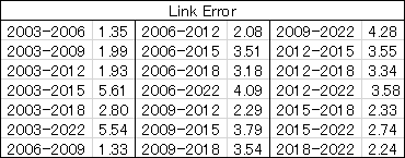 PISA2000の平均得点は550点, PISA2003の平均得点は548点、それぞれの標準誤差は5.5, 4.1、Link Errorは3.112である(ただし全てPISA2000を基準とした尺度)。検定統計量は0.27であり有意差は無い。